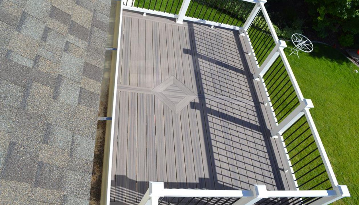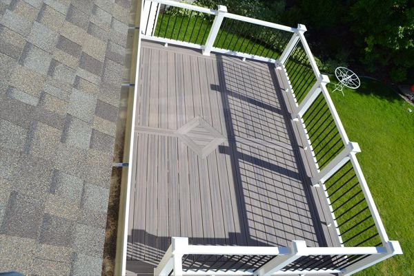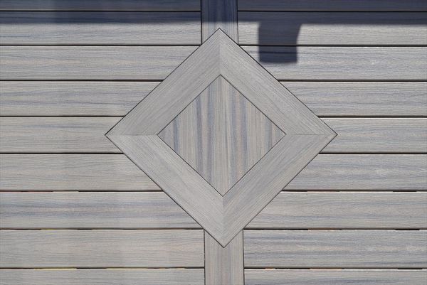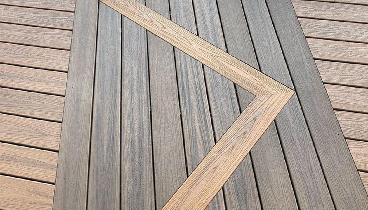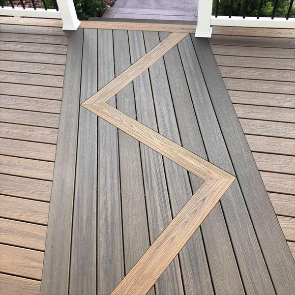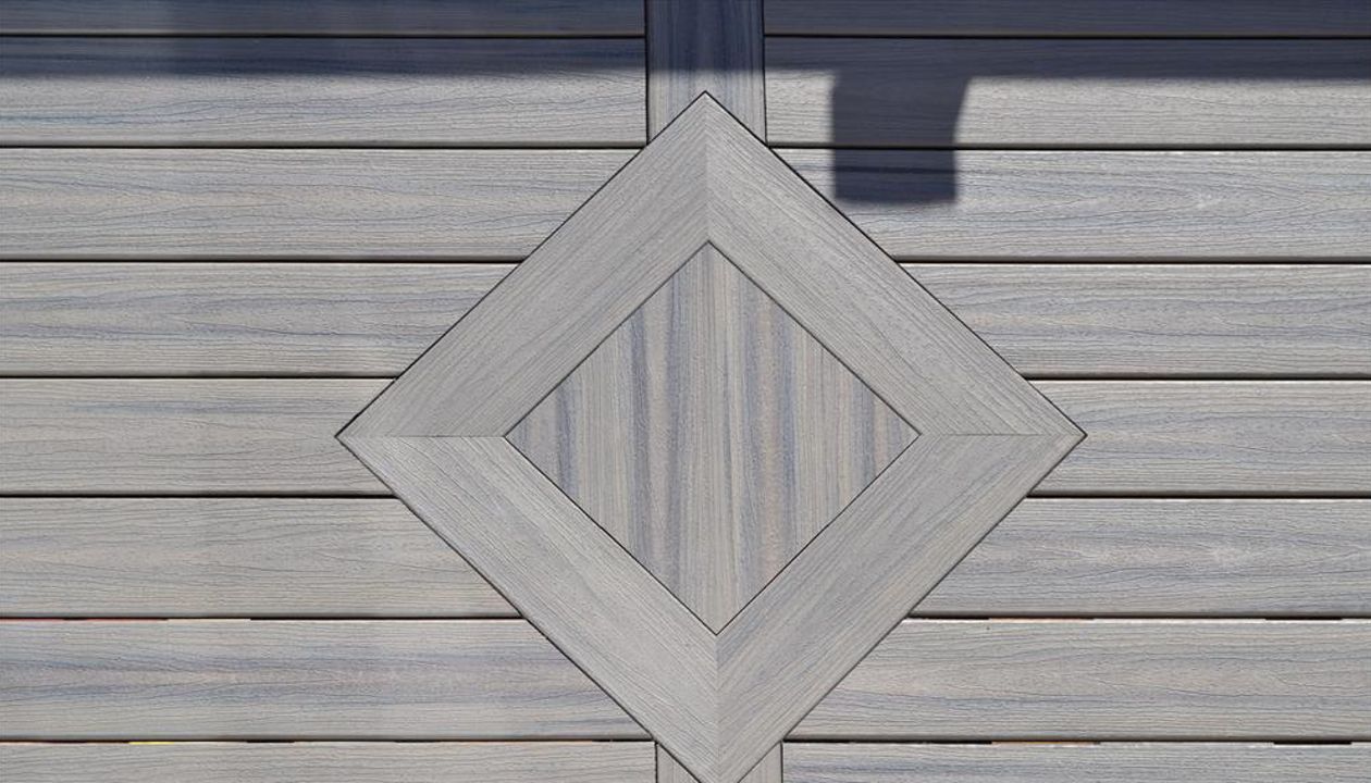 Trex Rocky Harbor decking with Select Saddle and Foggy Warf curved inlay.