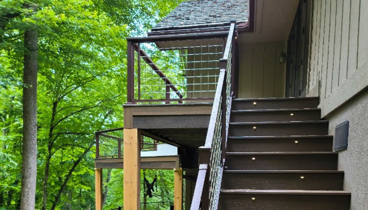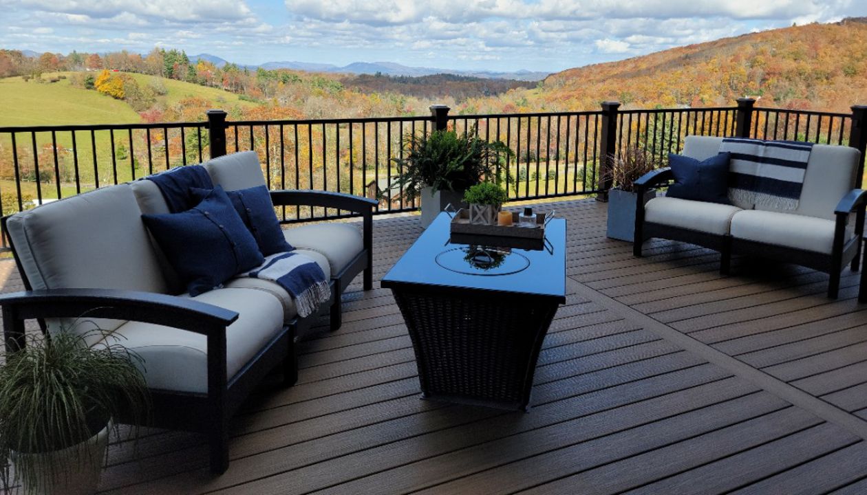 We are a full service crew that specializes in custom Trex decks and outdoor living spaces in western North Carolina and eastern Tennessee. We are highly experienced in the installation of Trex products and we pride ourselves on the details that make your outdoor space picture perfect. We also offer the newly popular, curved decking, to make your Trex deck stand out even more.
