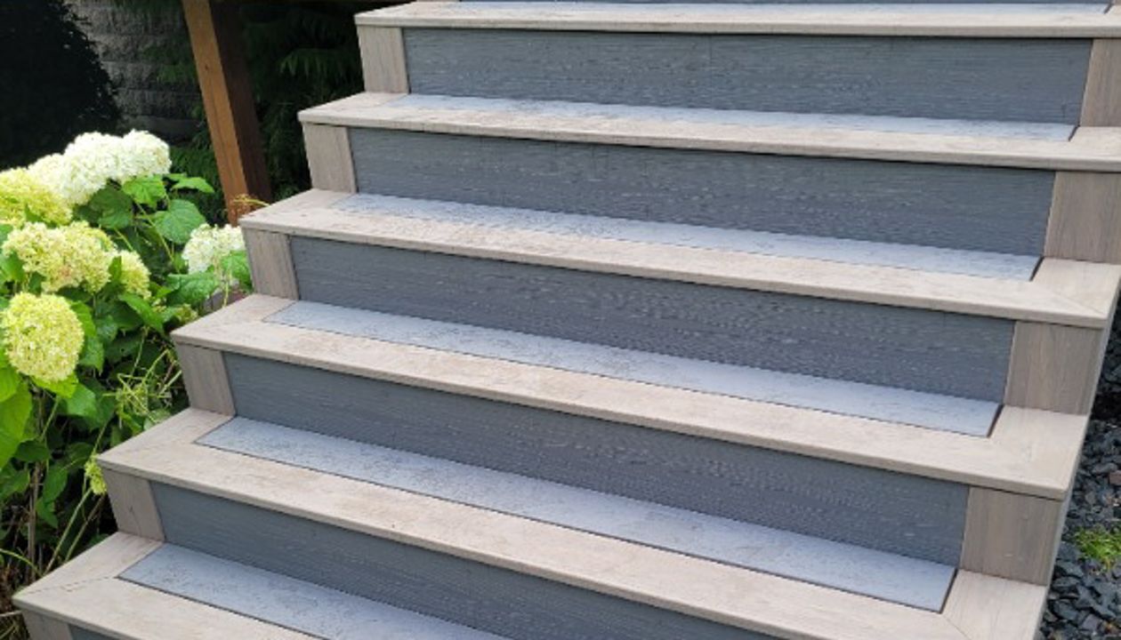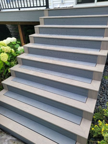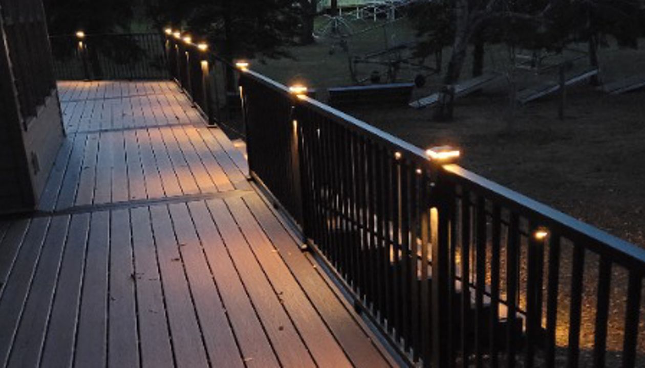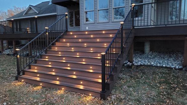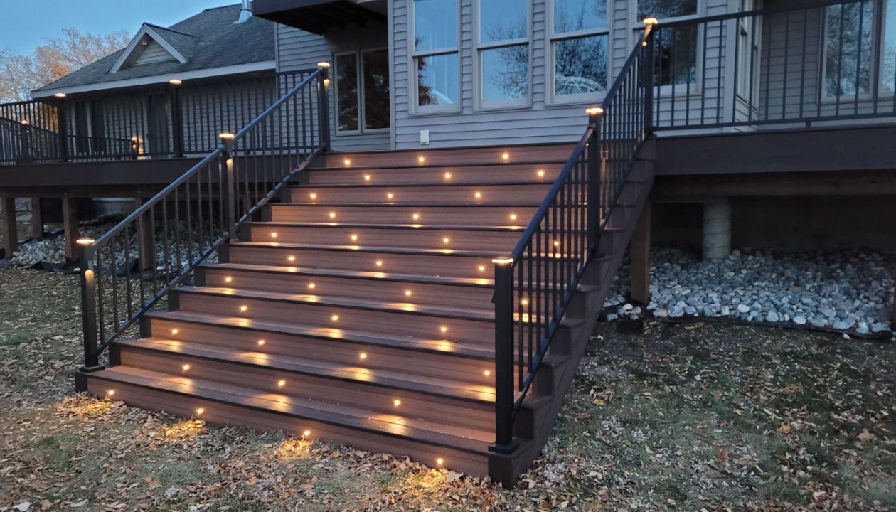Transcend Tiki Torch and Spiced Rum Decking with Stair Riser Lighting and Signature Railing, Red Wing MN