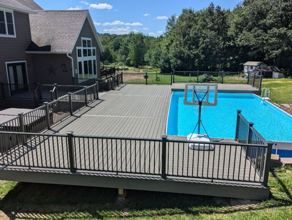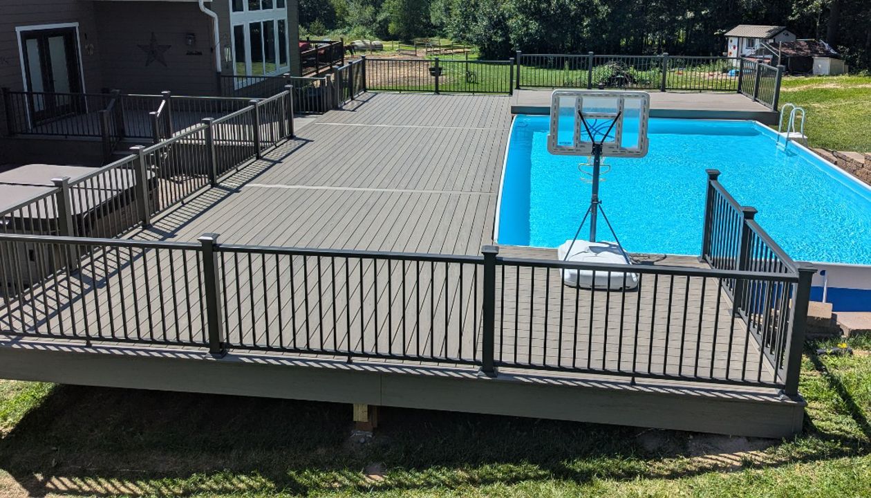 Trex Composite Decking around a pool in Eau Claire, WI area built by RBM Construction