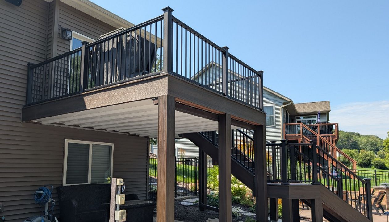 Trex Composite, Low- Maintenance Decking around a pool with aluminum railing built by RBM Construction, LLC. near Eau Claire, WI