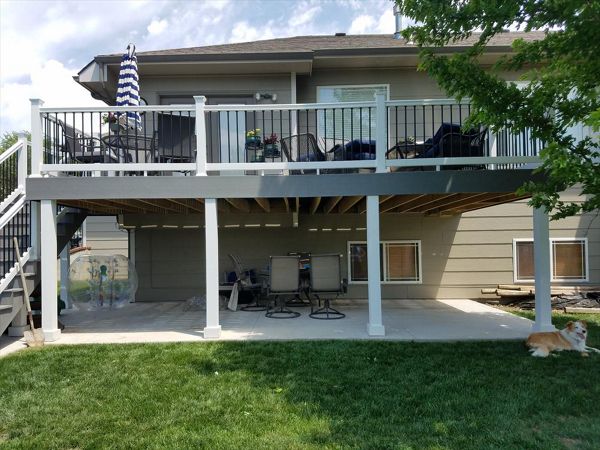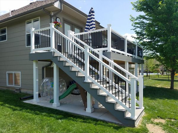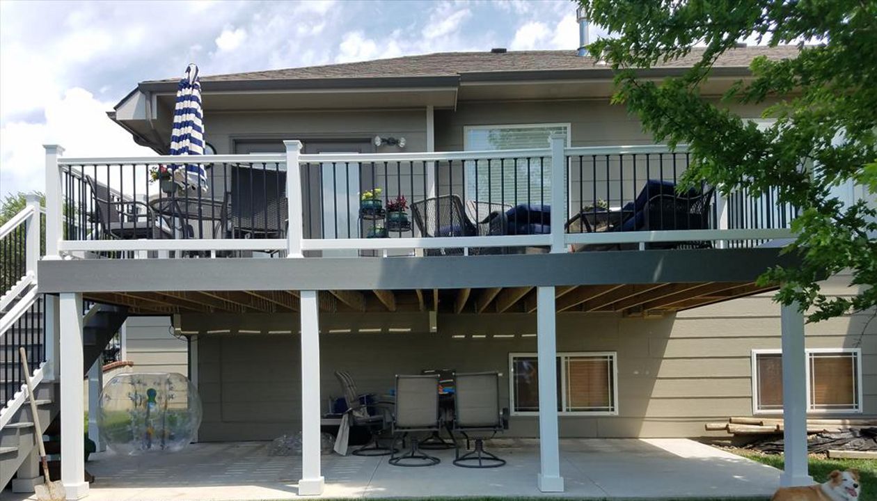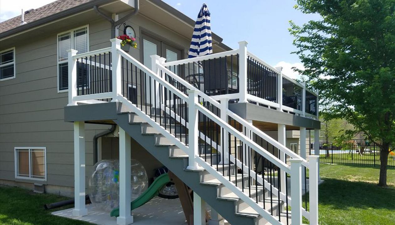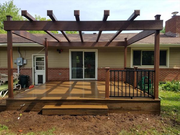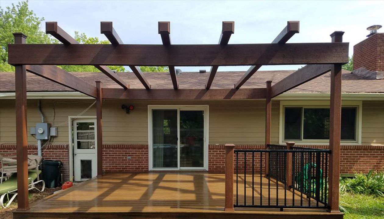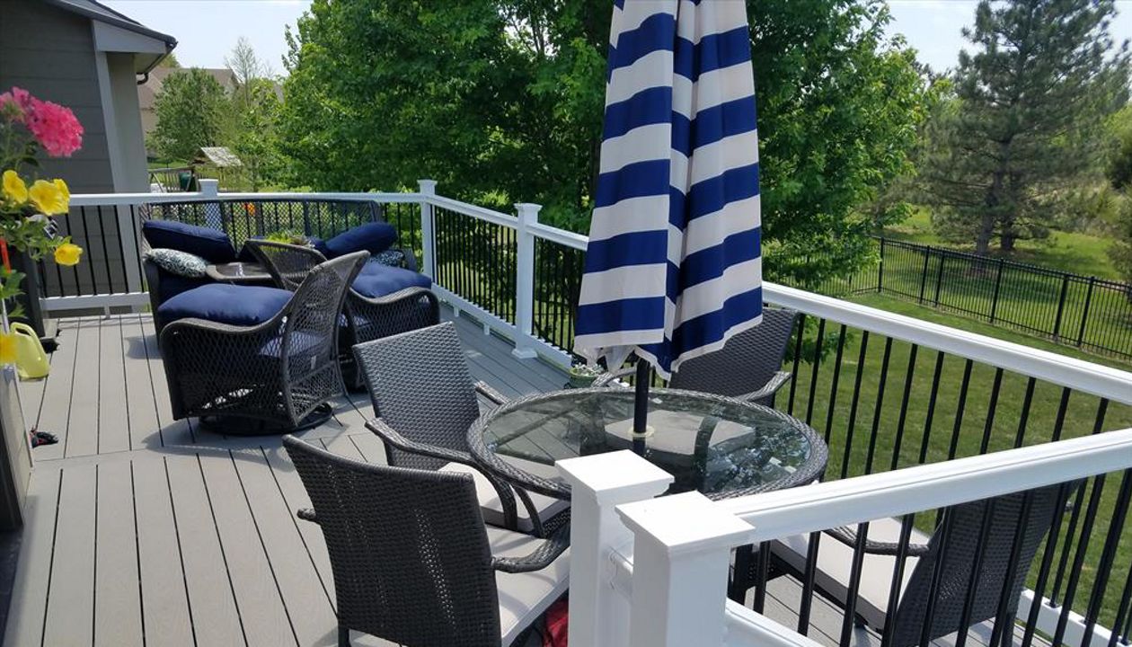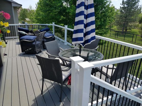 Trex Transcend Spiced Rum decking with Charcoal Black Signature aluminum railing with Tree House Post Sleeves in Wichita, KS