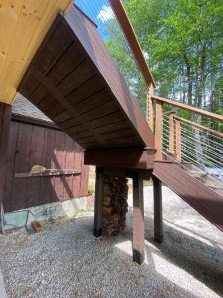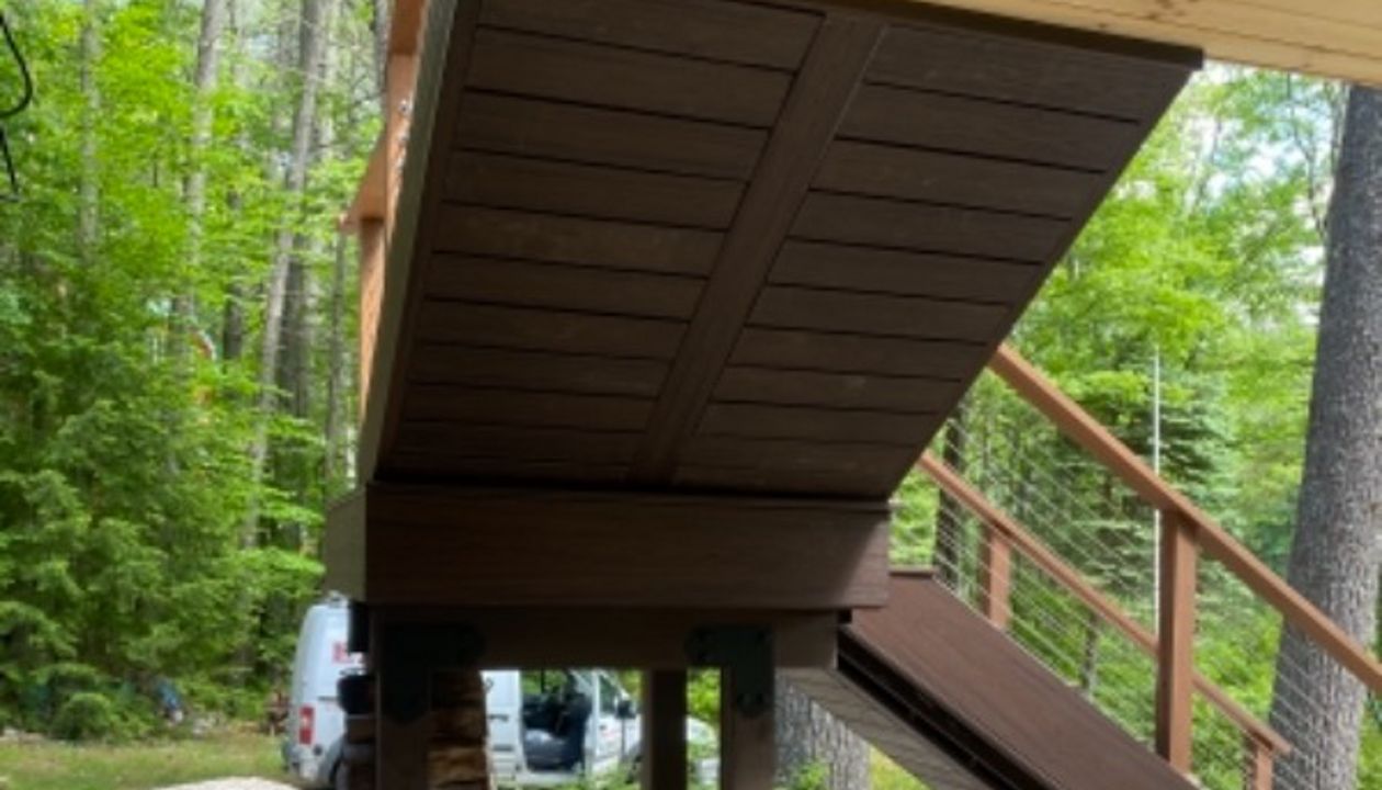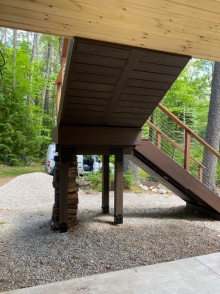 This deck has three hundred square feet of the rain escape system. This gave my customer a shed are under the deck for storage that other wise would be wasted space .