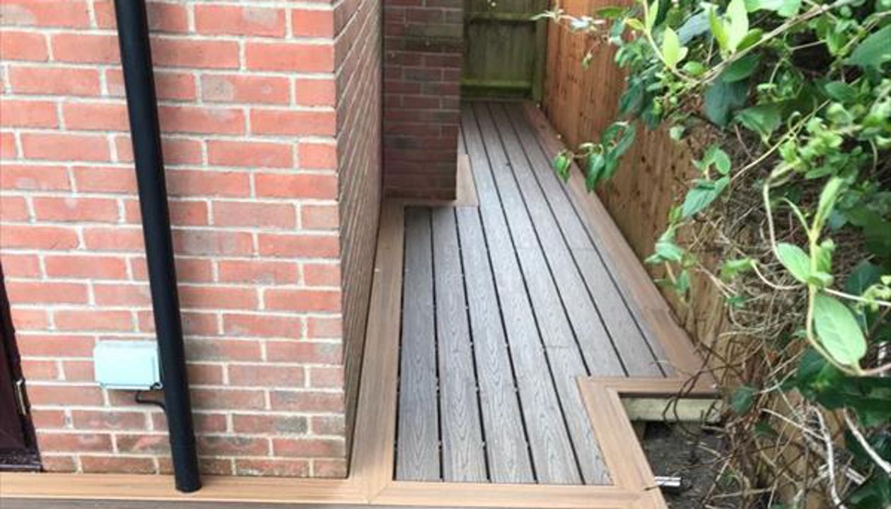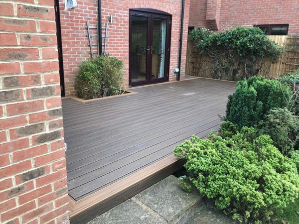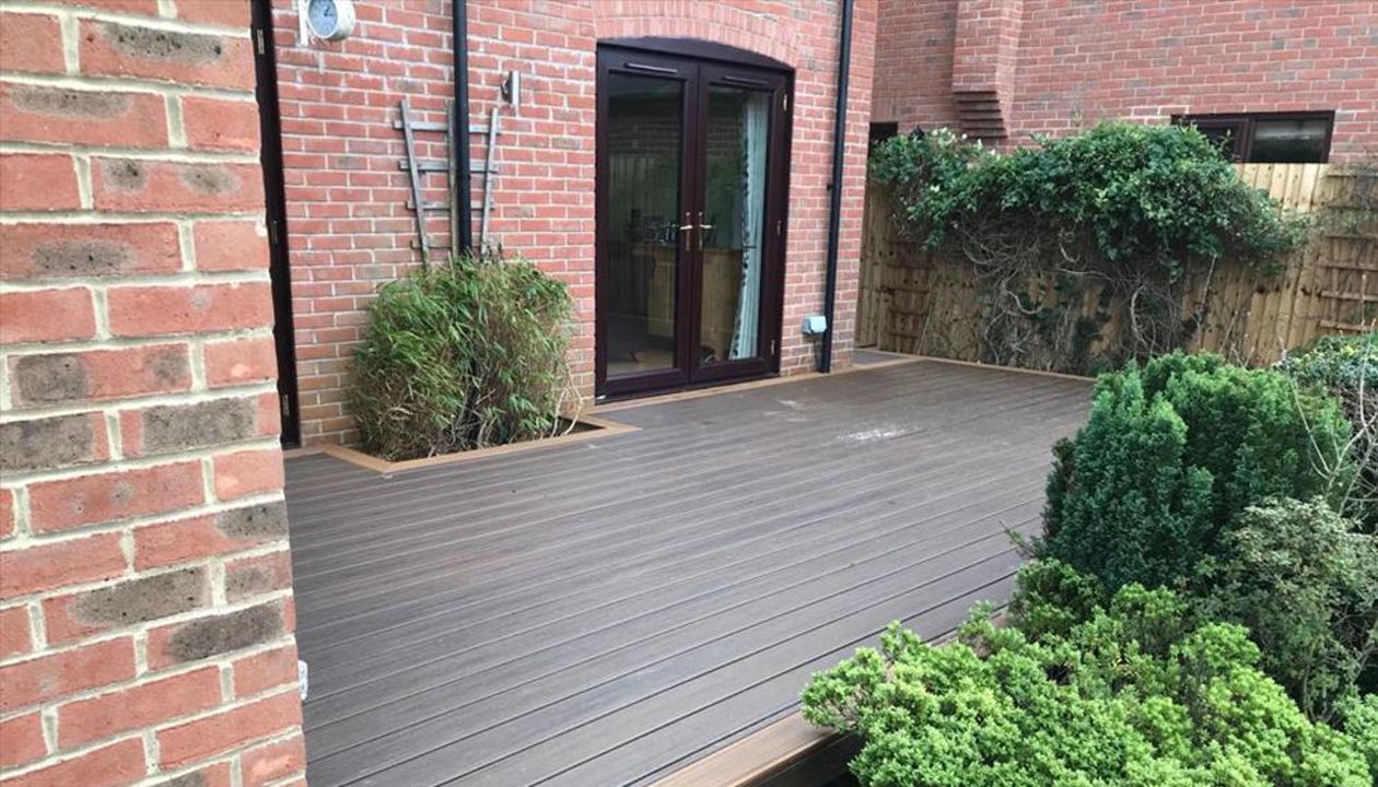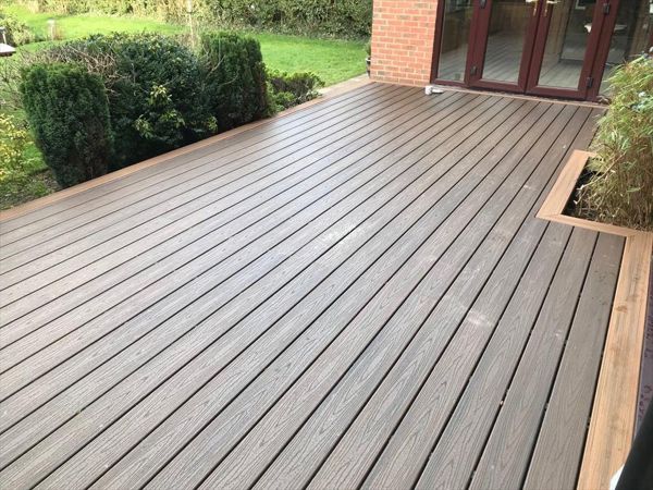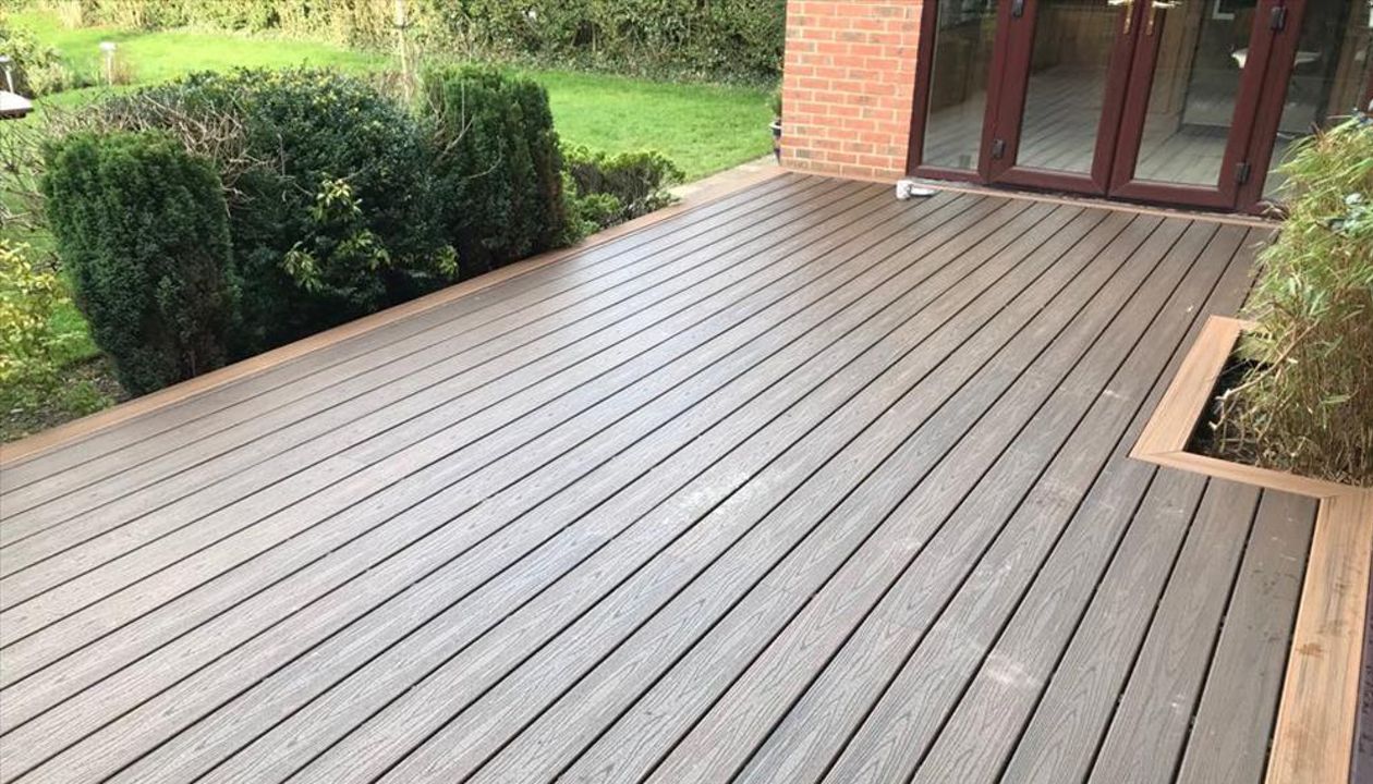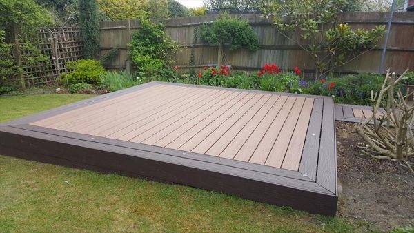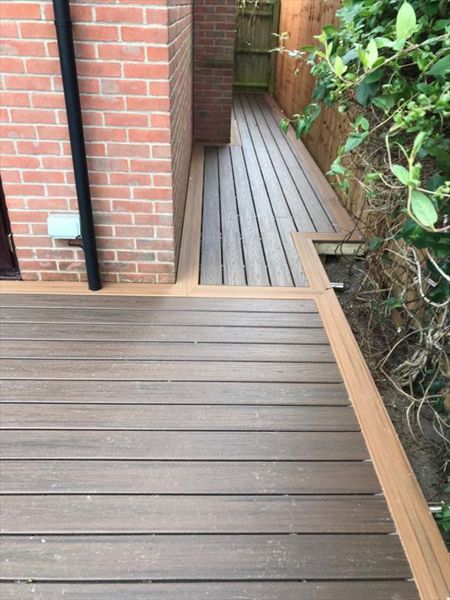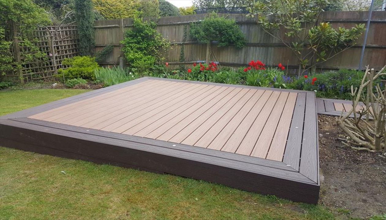 Existing wooden decking was removed and replaced with Spiced Rum with a Torino Brown picture frame. The decking can now be used all year round.