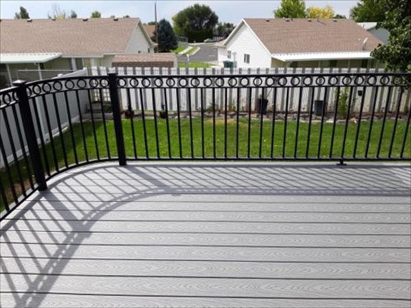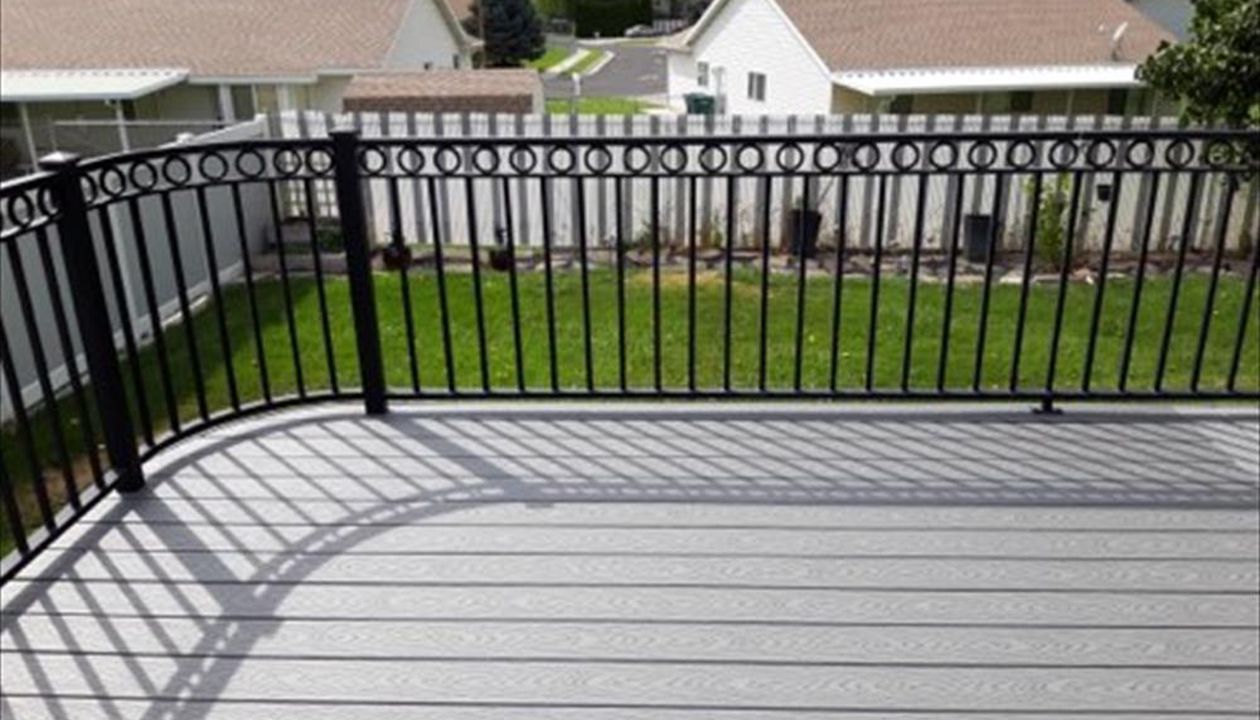 Saddle Decking with Black Steel Railing with an Overhang