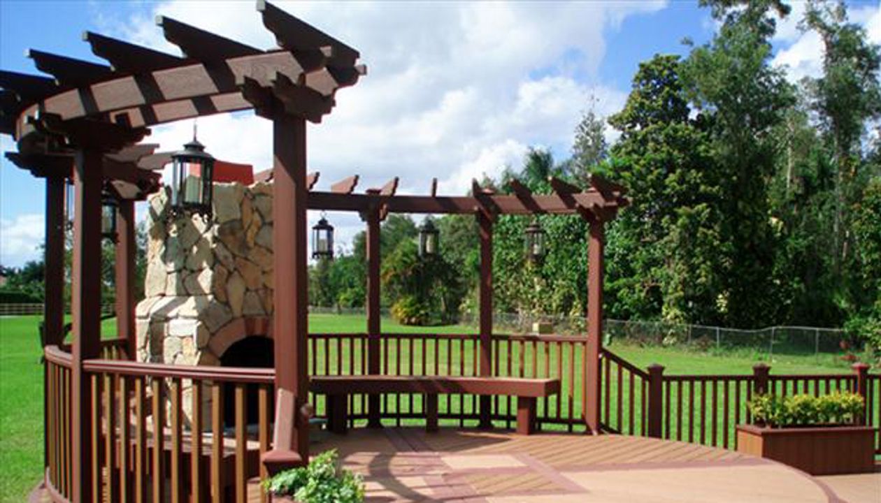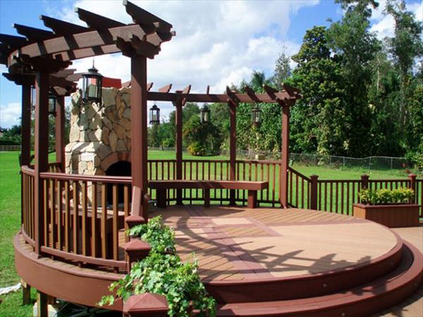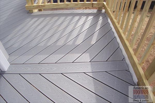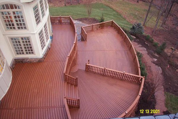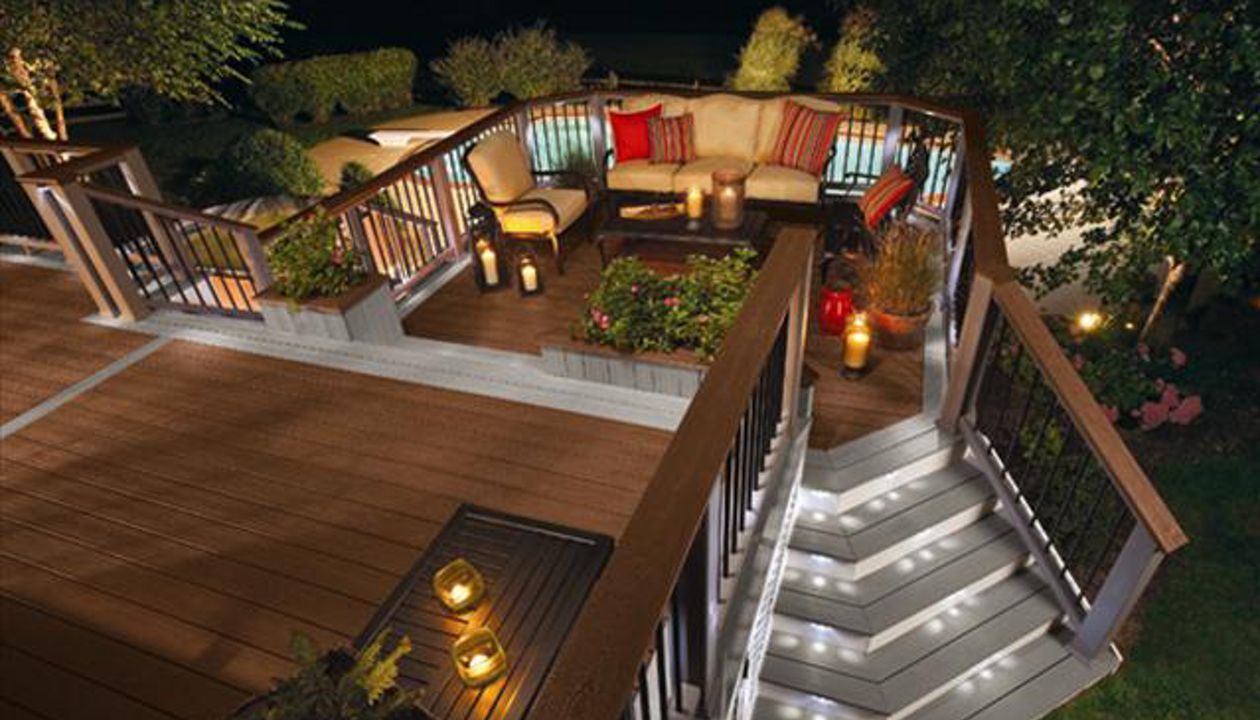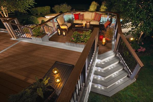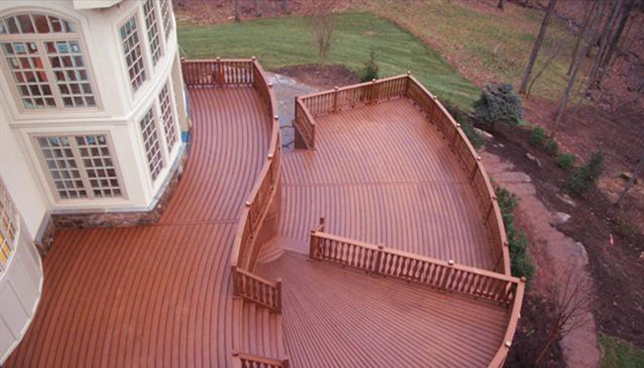 Trex Curved Deck. Curved accent Trex Vintage Lantern inlay.