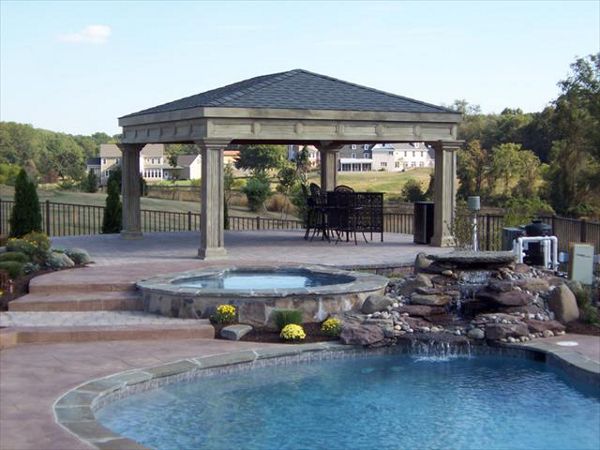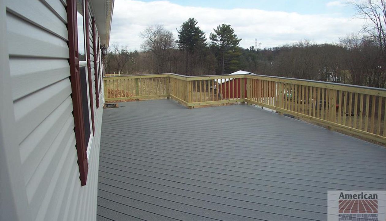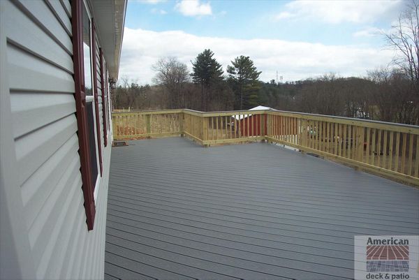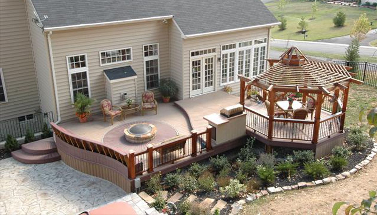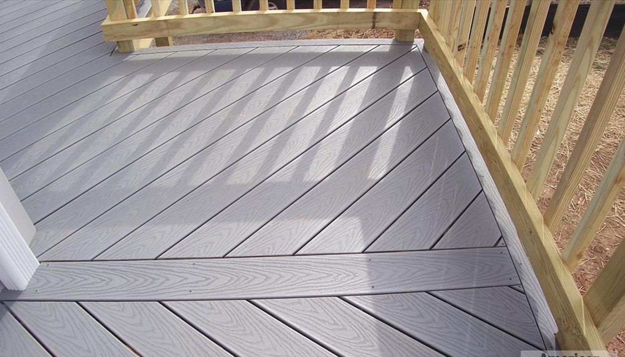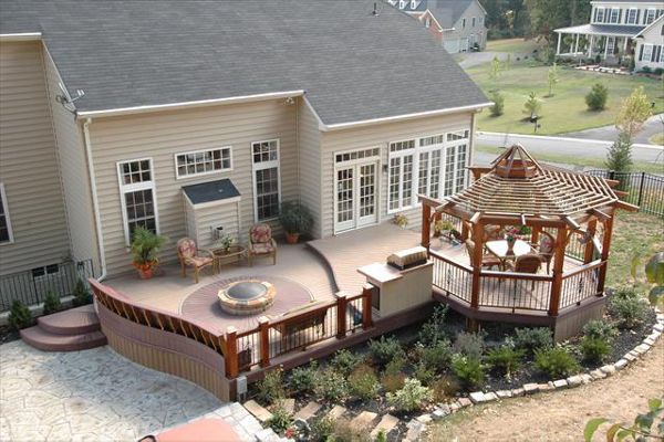 Trex Curved Deck. Curved accent Trex Vintage Lantern inlay.
