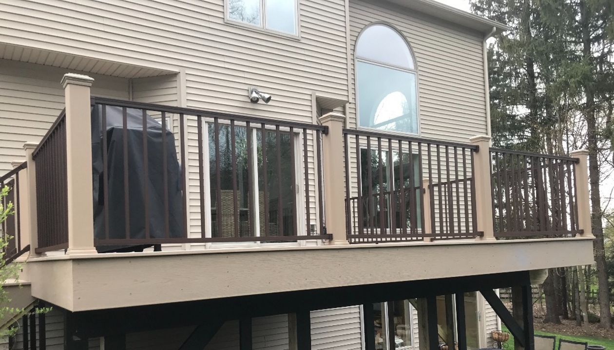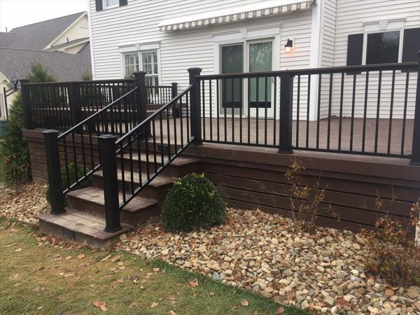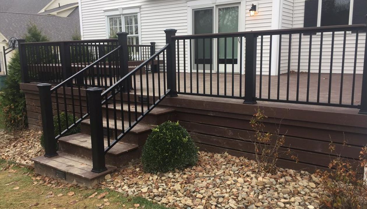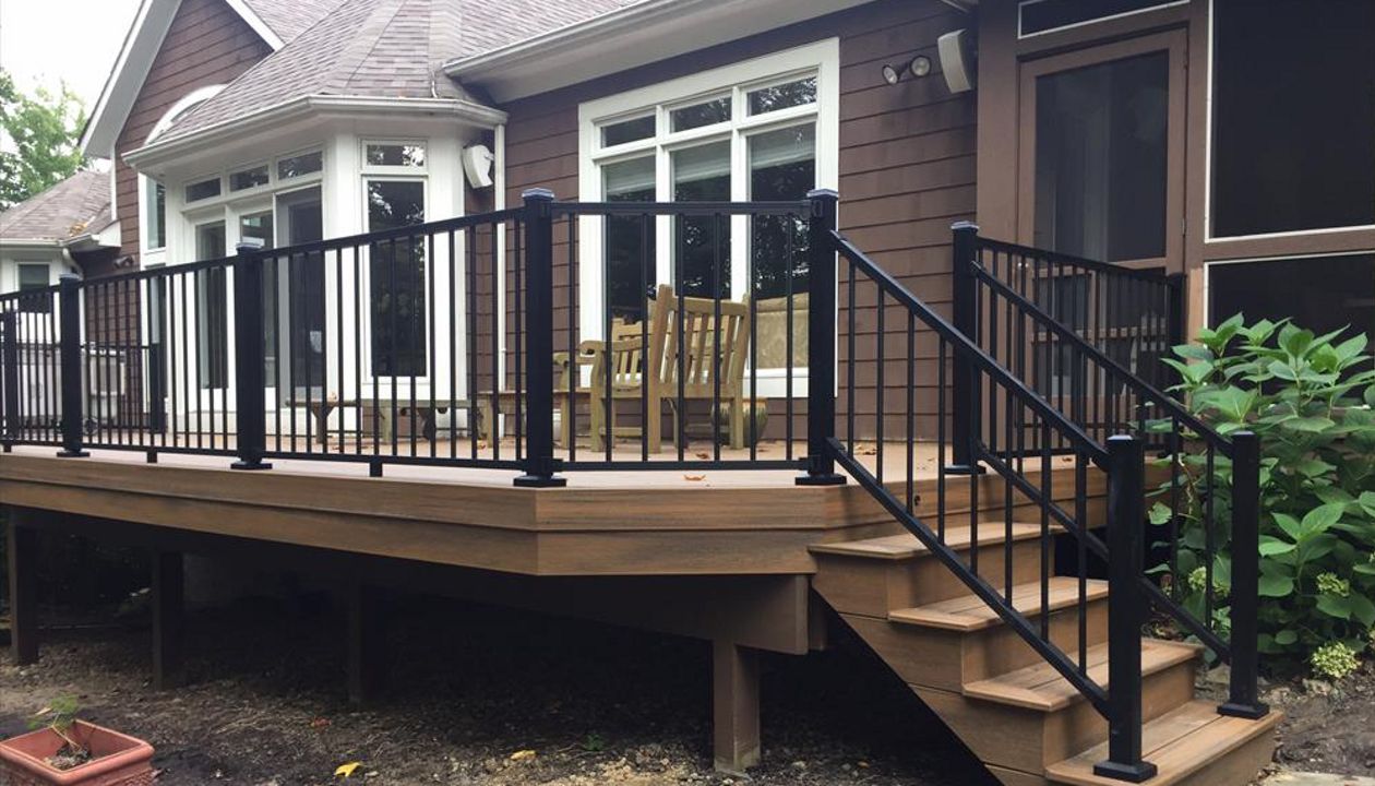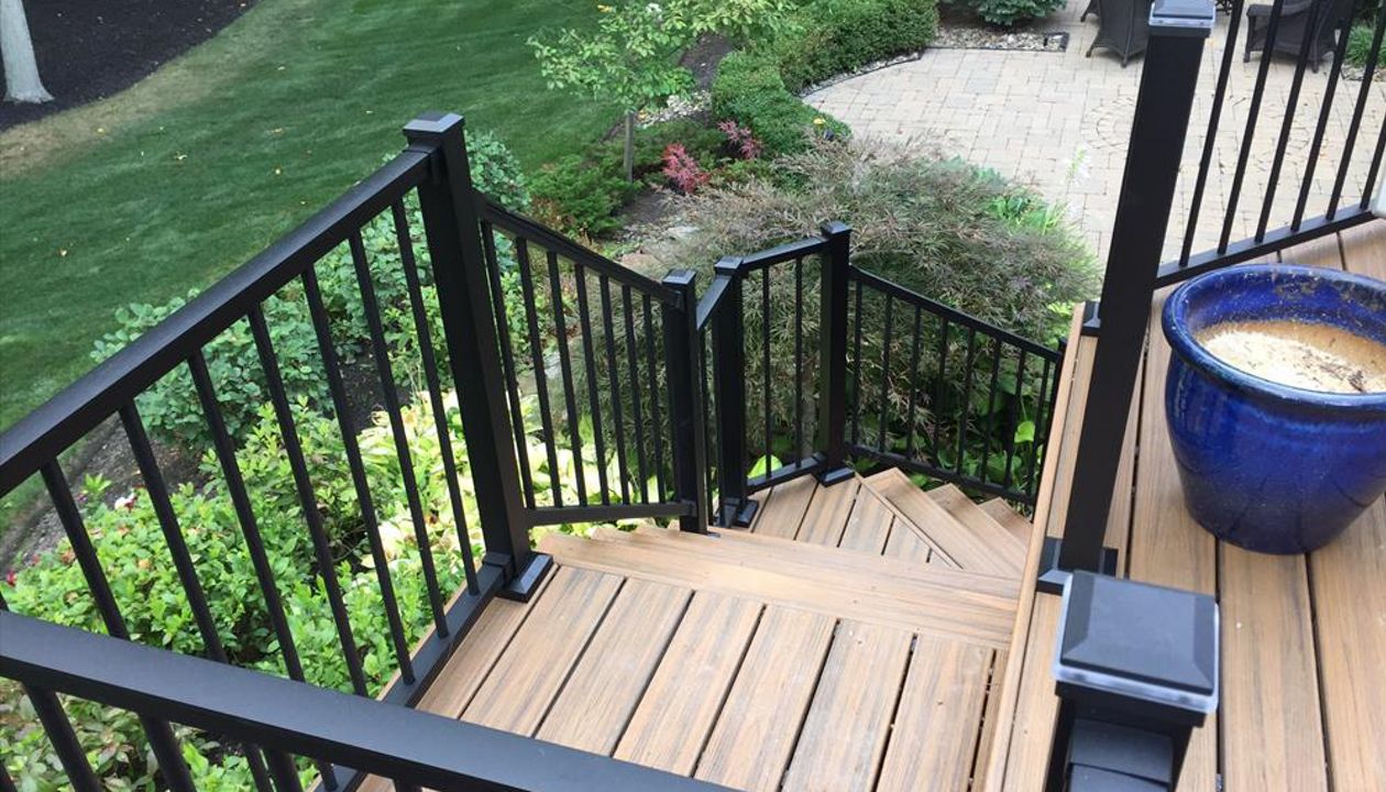 Trex Transcend Lineage Biscayne w/ Trex Signature Mesh railing in black.