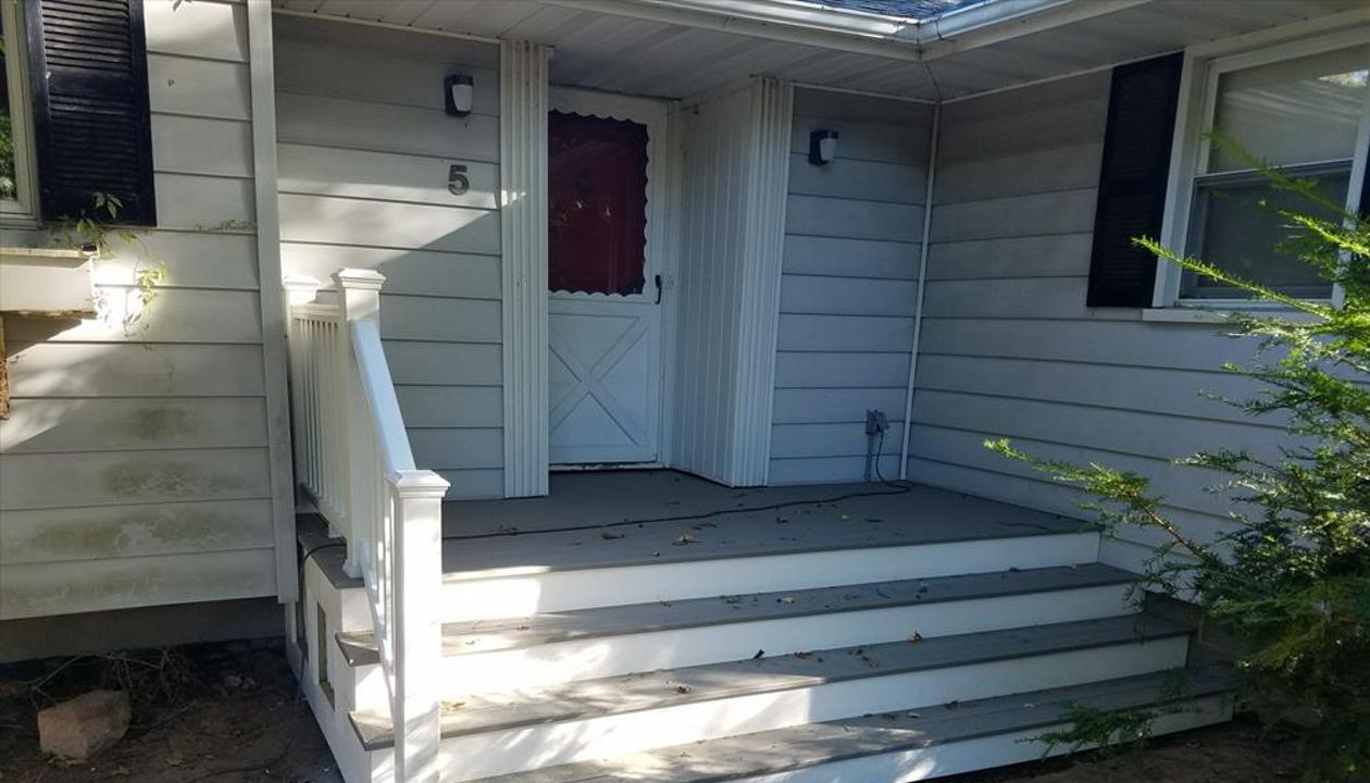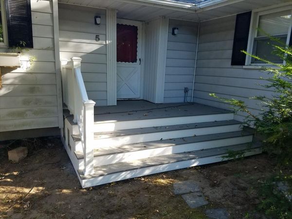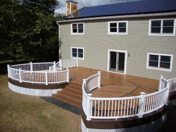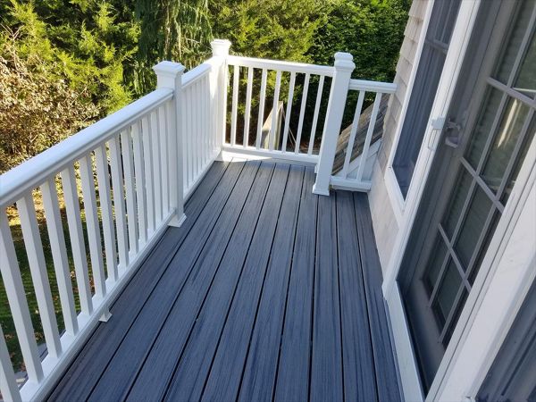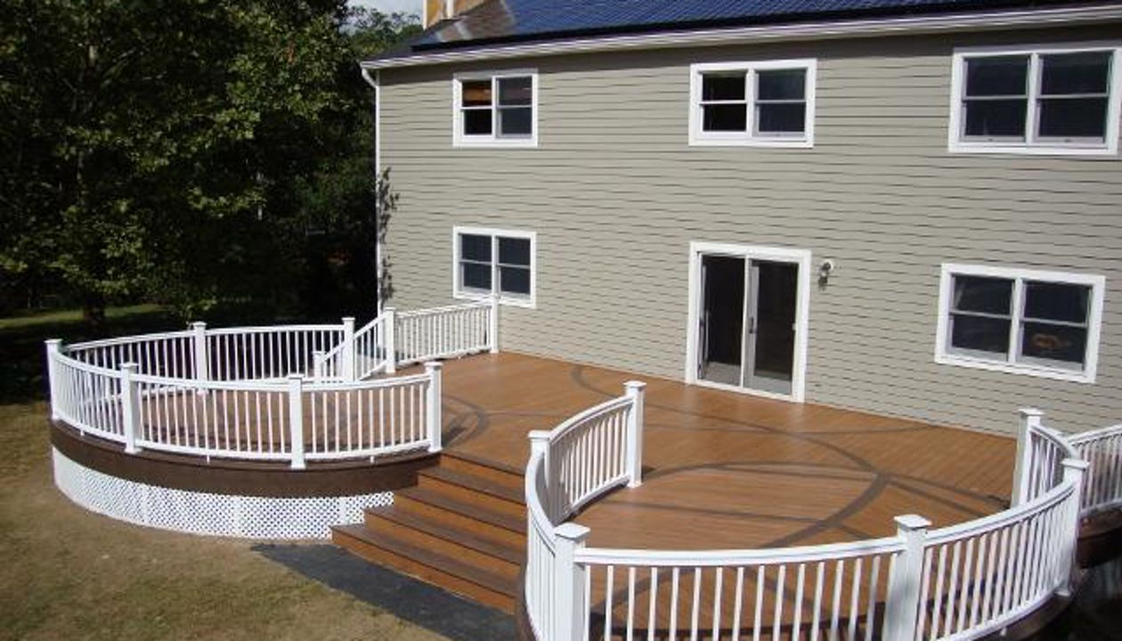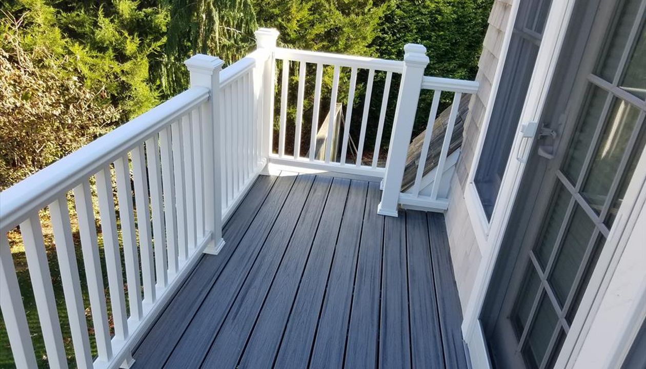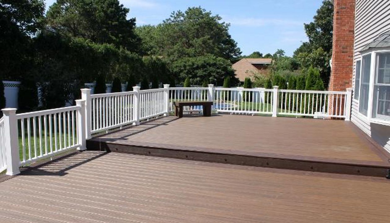 Spiced Rum Decking. White Rail with Post Cap Lights