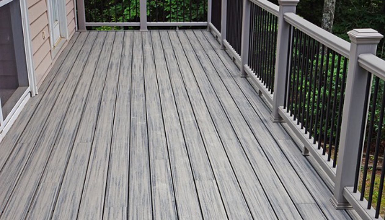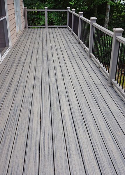 Trex Transcend Island Mist deck with Trex Transcend Gravel Path Railing