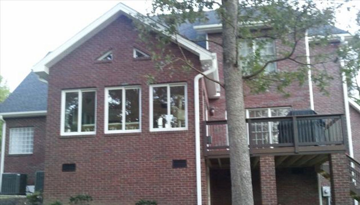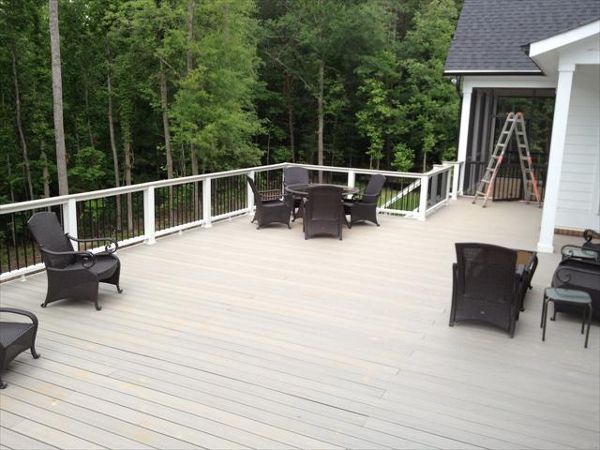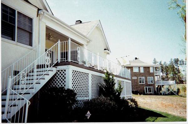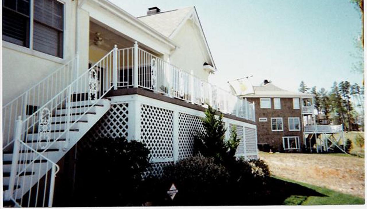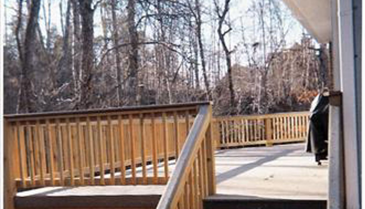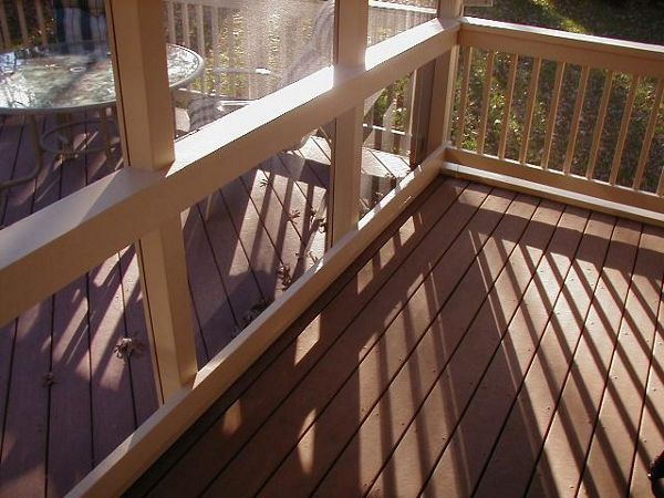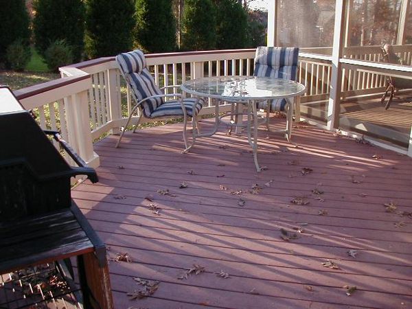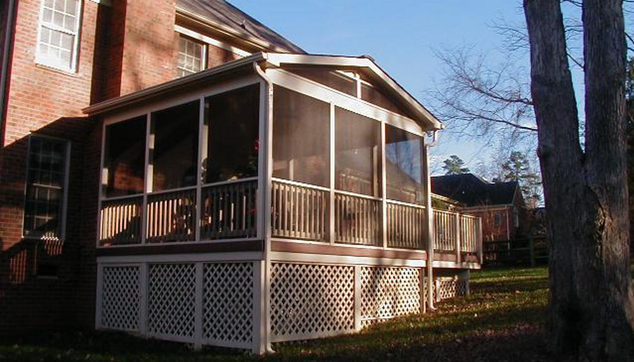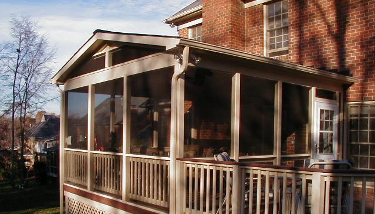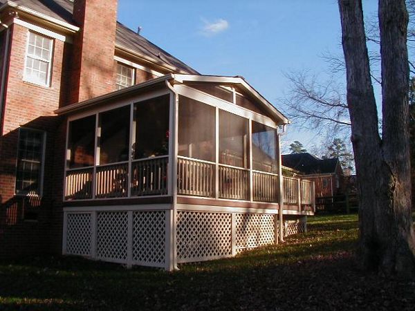 gravel path deck screen porch fire place
