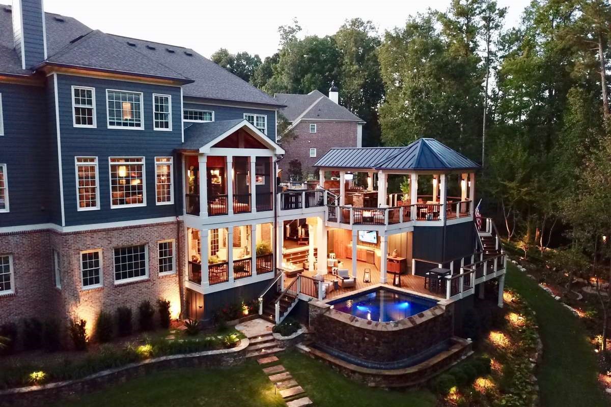 “The concept of the den originally gained popularity for its ability to bring everyone in the home together in a relaxed, comfortable setting,” notes Adkins. “Bringing this concept outdoors and allowing homeowners to enjoy that same comfort and connection is the very definition and goal of outdoor living.”