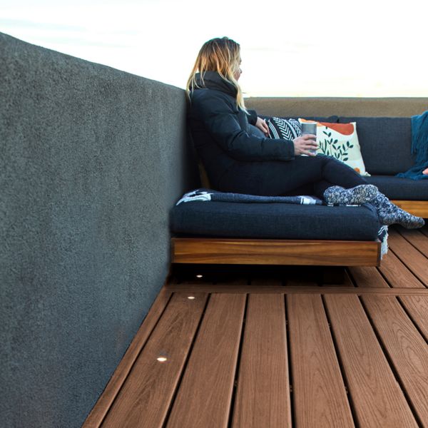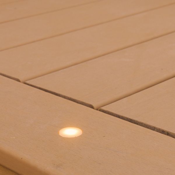 These subtle dot lights install flush on the deck boards—or almost any other material—to efficiently light the way.